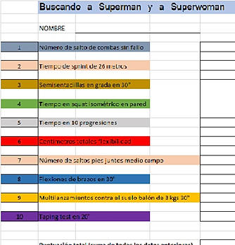 Los alumnos se deben medir cada uno de los items y anotarlos en su tablet. Al final deberán sumar todos los resultados de medida y restar los resultados de tiempo y les dará un coeficiente definitivo para saber quien es el Supermán y la Superwoman de la clase.